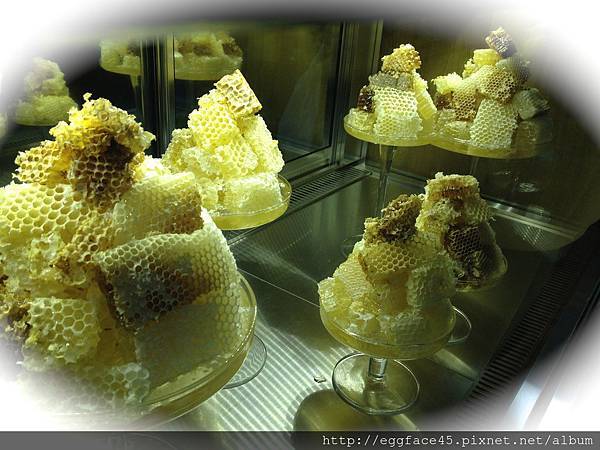。最上層:是剛剛你們看到的蜂巢淋上蜂蜜,恩,我知道很奇怪,蜂巢顏色整個變淡了。這一層非常甜,怕胖民眾要小心,哈哈!!!但蜂蜜養顏美容啊,愛美民眾吃一下吧!!