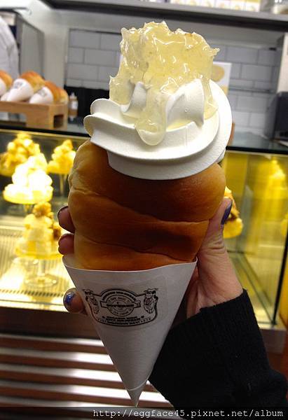 。第二層:香濃牛奶冰淇淋。看!!這名字是不是很威?!這裡的冰淇淋只有這個牛奶口味可以選,微甜。一口蜂蜜一口冰剛剛好!!