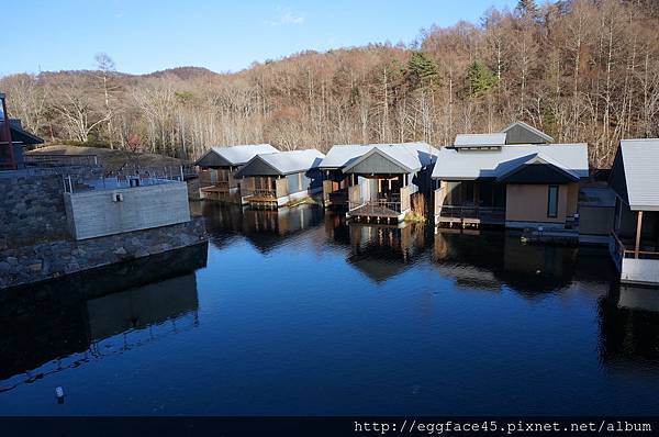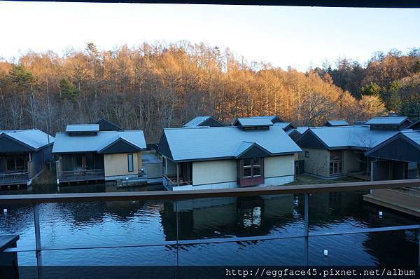湖水好藍,可惜天候不好,3度的天氣沒有藍天的呼應,加上枯凋的樹木,使得照片看起來有些冷漠。這是從房內陽台看出去的景像。