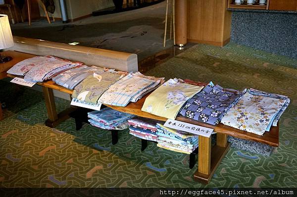 飯店服務員先是請我挑選浴衣花色和尺寸,選好後再幫我送入房裡。(男生沒有得挑,這是身為女性的優勢啊~!!哈!!)