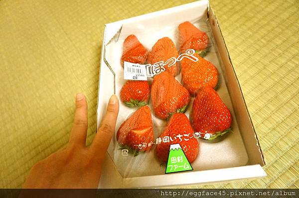 再搭配我們自已在超市買的草莓,那草莓超大超甜的,在台灣我還沒有看過那麼大的說,都要跟我的手指頭一樣長了,以前其實也吃過日本的草莓,是很大沒錯但總覺得不酸也不甜沒什麼滋味,但這次不一樣,這次是甜的~是甜的~是甜的耶~~~(攦花~~~)