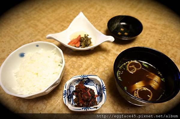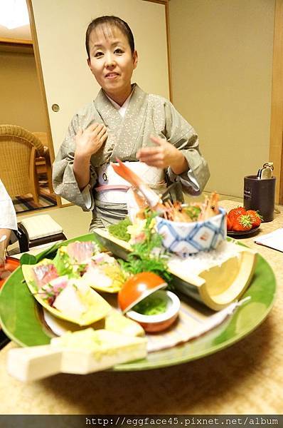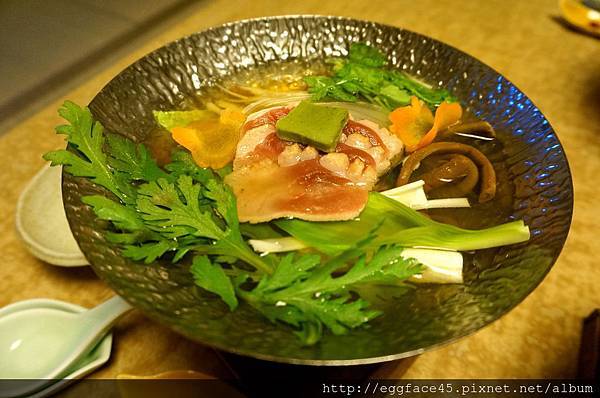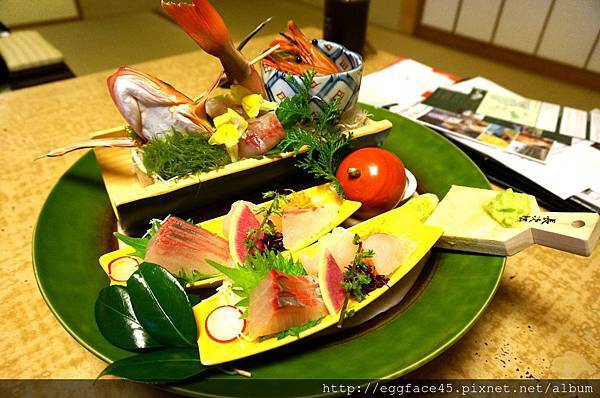當然主角是伊東特產"金目鯛生魚片",看色澤好像有點乾乾的,可能是切片後擺盤起來放久了,吃起來似乎少了點水份