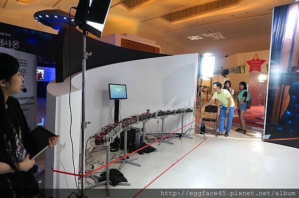 ↑現場有免費拍人製作4D影片的地方,那個黃衣藍褲男就是導演啊,他會教你如何擺POSE、走台步之類的,然後前面有20台眼相機由左到右的連續拍照而製成的4D影片,後面的藍板是都教授的書房,其。實。我。有。拍。你。們。想。看。嗎?想。看。我。再。上。傳。吼!!!乖!!!!