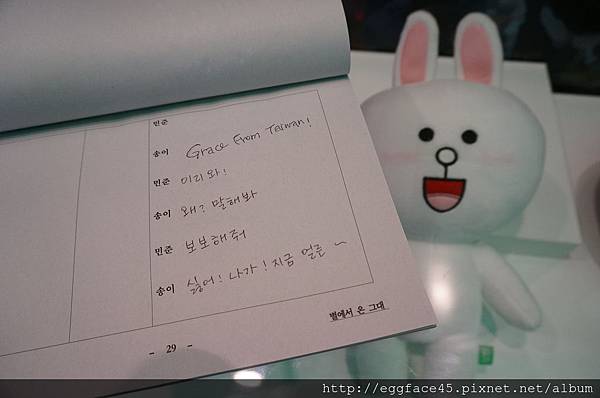 其實這是簽到簿啦,然後你可也可以自已當一樣編劇,為頌伊姐和敏俊歐爸想一下台詞編一樣劇本!!