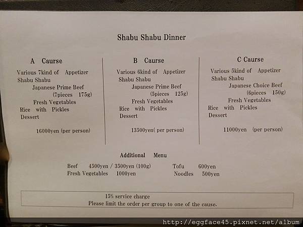 這次是二訪,以shabu shabu火鍋為主食;而一訪的食記則是以sukiyaki壽喜燒為主食,[京都食記] Shabu Shabu的創始源地 -- 京都花見小路 十二段家 壽喜燒 Kyoto Junidanya Sukiyaki (2012/09) 。