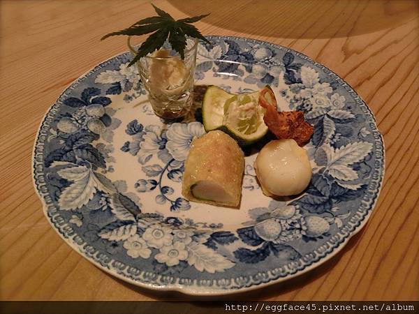 今天的菜色中,完全沒有『肉品』在其中,完全是以『海鮮』為主,我想Seisoka最擅長的就是利用當令時材,用看似簡單的調理方式來烹調料理,(但別忘了,通常要把最簡單做到最好那才是最高境界啊!!),雖然料理風格跳脫出傳統懷石的框架,但是仍保留懷石最講究的餐具與擺盤藝術,這是令我最激賞的!!