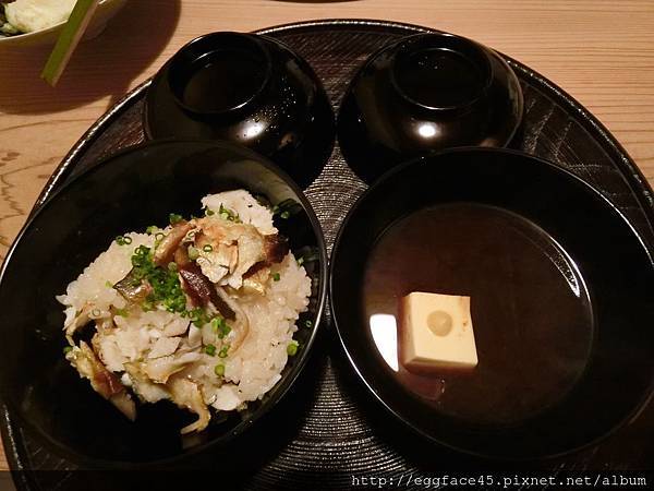九、烤魚蒸飯+紅味噌豆腐湯+茄子醬菜
