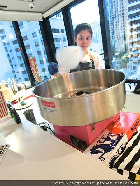 店家給你兩罐藥水往雲朵般的棉花糖噴上去,