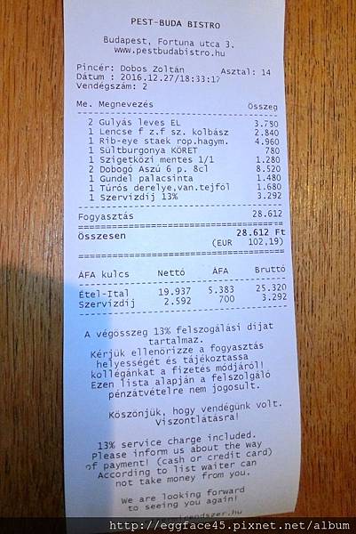 102歐元/2人,當時匯率換算過來大約1700台幣/1人,