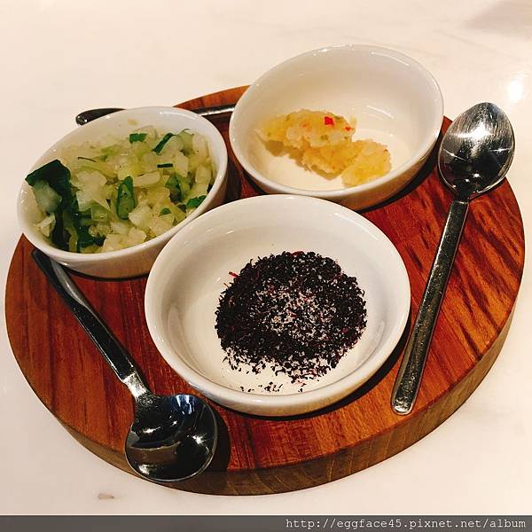 分別是:蔥鹽、紫蘇鹽、柚子胡椒。