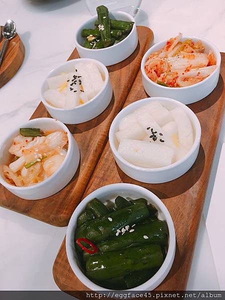 點完餐後,會先送上小菜,有泡菜、醃蘿蔔、醃小黃瓜,