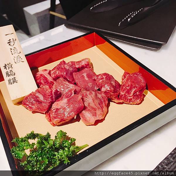 店家在端出時,已先將橫膈膜切成方塊狀。