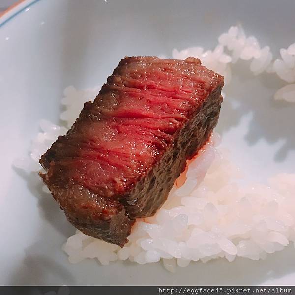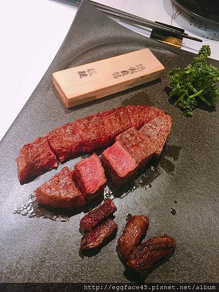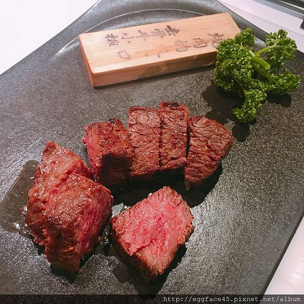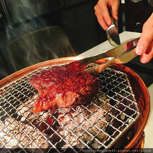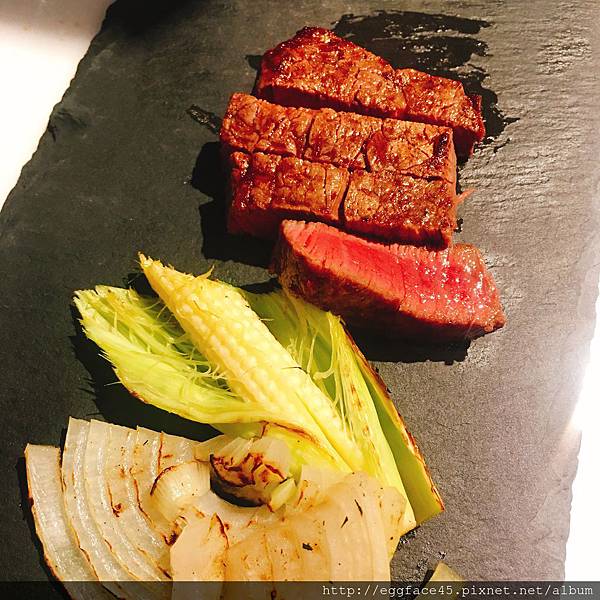 服務員建議烤至7分熟,外表微焦帶有碳香味,內部仍軟嫩且油脂豐富,