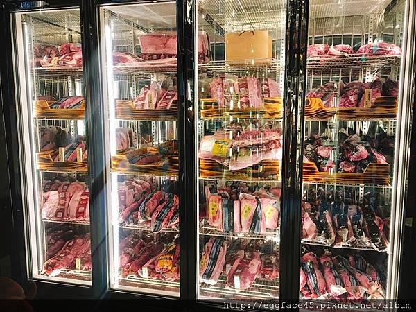 兩側冷藏冰櫃裡,分別放置滿滿的各部位牛肉和