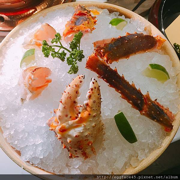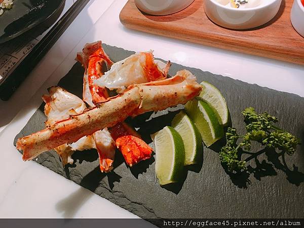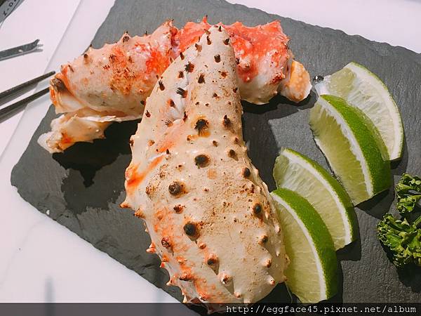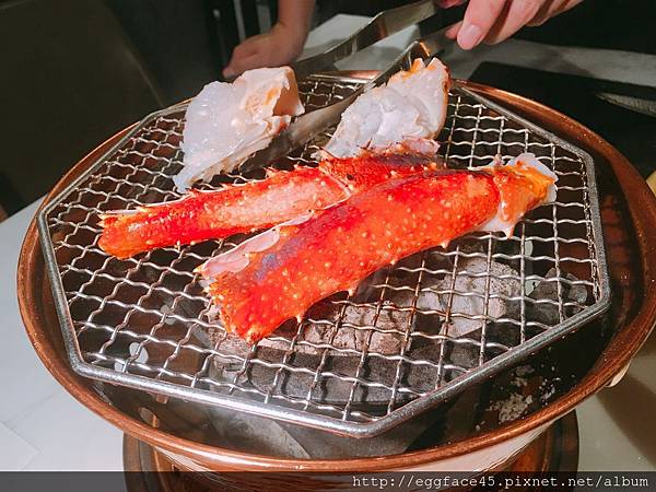 肥美的帝王蟹腳,在烤爐上逐漸變紅~好誘人啊!