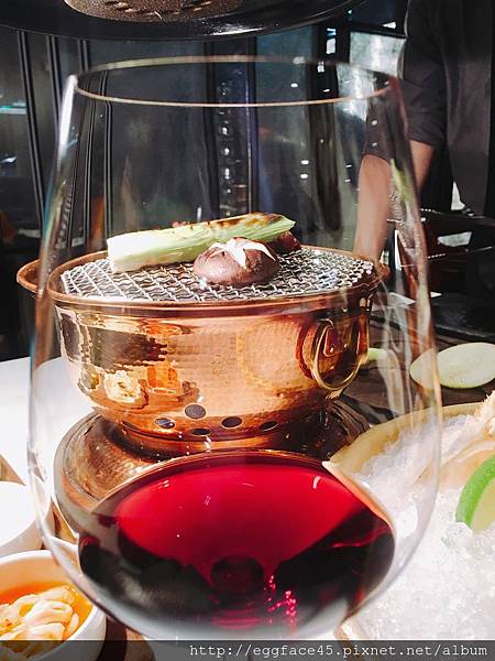 等待服務人員燒烤的過程中,來上一杯紅酒吧!