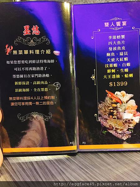 確認座位後,服務人員就會將menu送上,