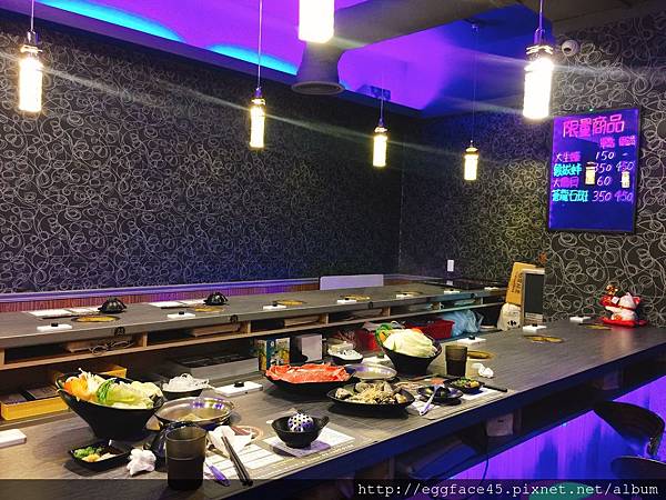 但裝潢用色較偏暗色系,加上藍紫色的燈光,