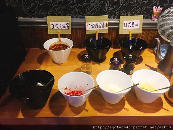 擺放乾淨整齊,各種醬料都可自行搭配選用,