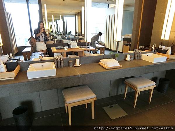 溫泉旅館式的盥洗設備和空間,一人一座位,美麗也能好享受。