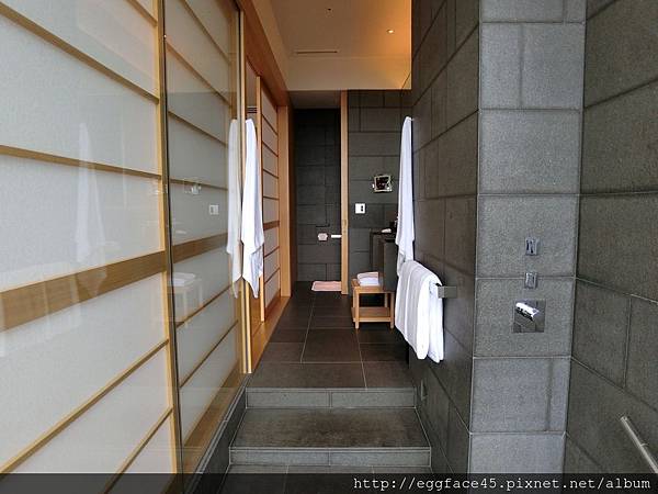 客房側邊的和紙拉門即是衛浴空間,