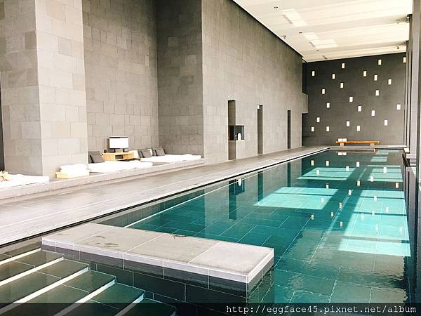 藍綠色高挑長型的泳池看起來超舒壓,