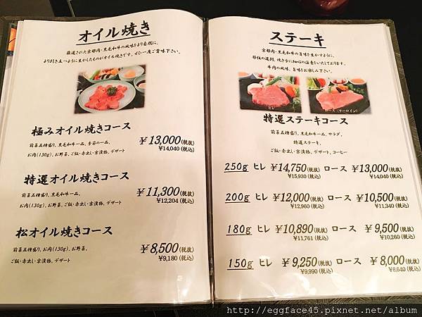 仔細看會發現菜單價位的差別也正是肉品等級的差異。