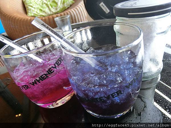 ↓迎賓飲料~~蝶豆花水,是很典型的熱帶植物,