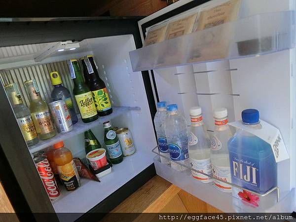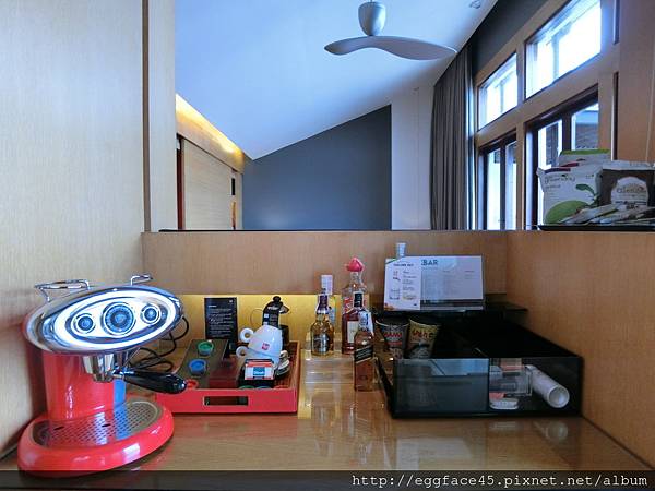 ↓房間中央的Mini Bar應有盡有,illy膠囊咖啡機、冰箱冷飲滿滿滿。