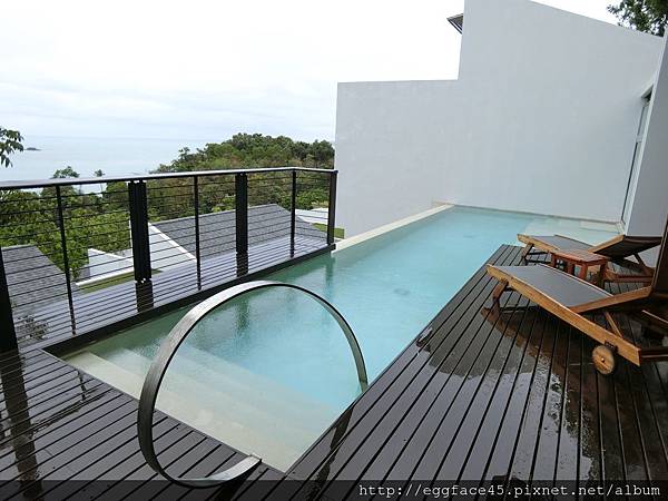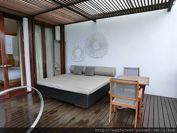 ↓泳池邊有個不會淋雨的小臥鋪,沒事來這躺躺也很悠閒。