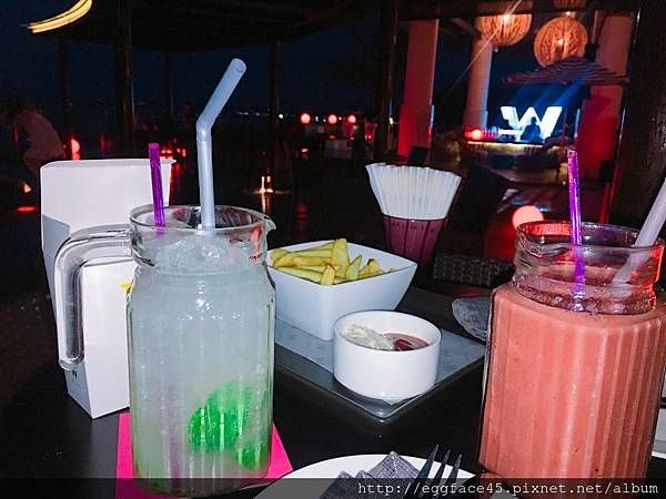 ↓在水上Longue從下午4點坐到6點半,在旁邊池畔酒吧叫了飲料和薯條,好愜意。