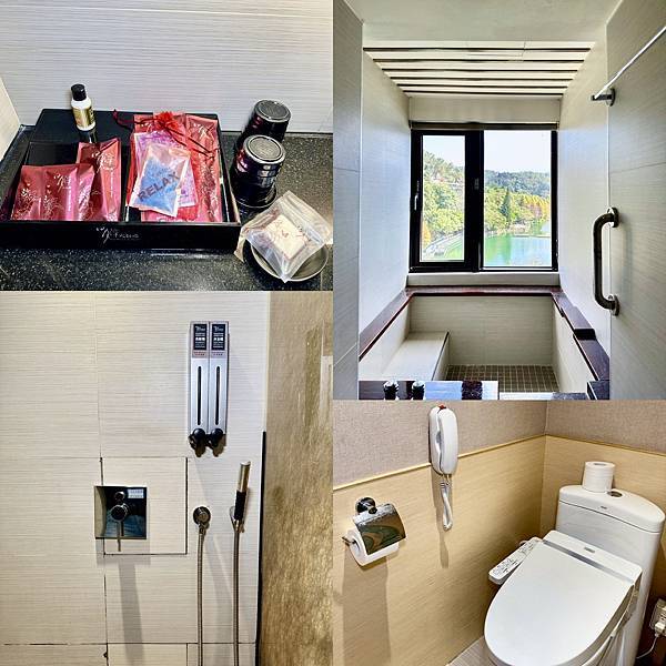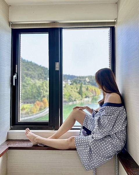 有浴池可泡湯,還能欣賞日月潭的湖景。