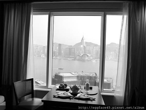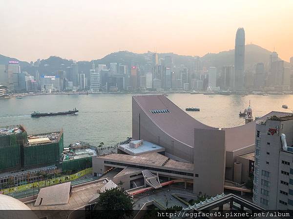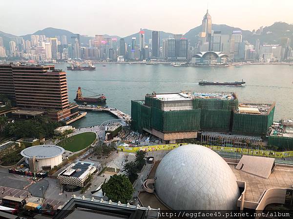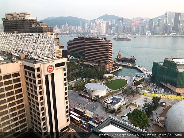 客房內能看到對岸香港島的「香港會議展覽中心」、「香港IFC大樓」