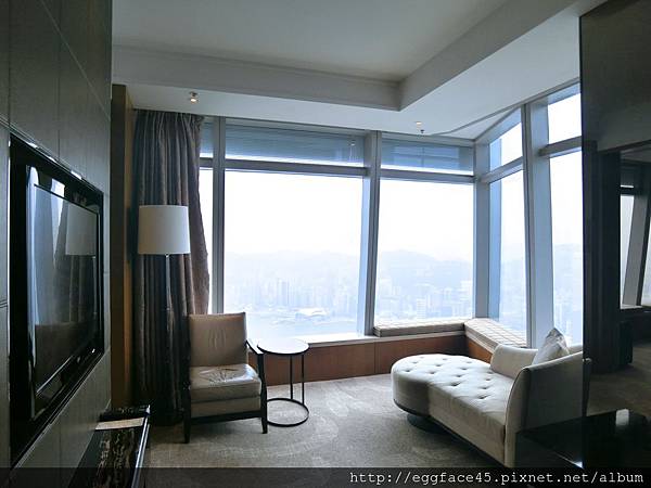 靠窗邊有個坐臥沙發玻璃窗,有超強大的視野能觀看維多利亞港,94狂啊!