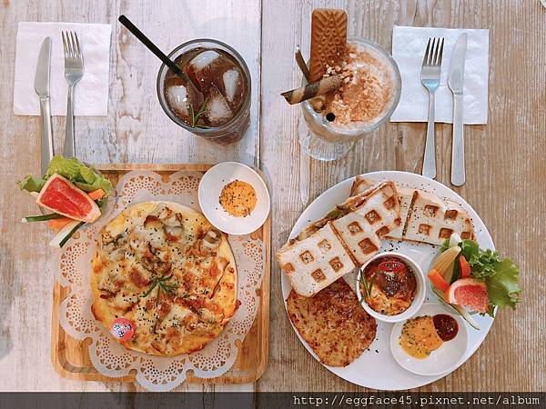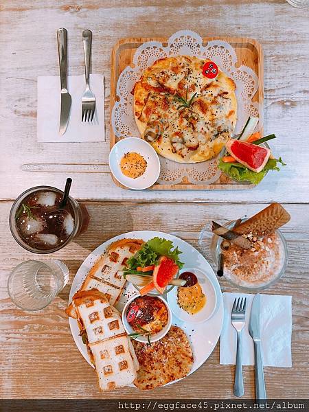 有早午餐系列、Pizza、烘蛋、鬆餅…等輕食,也有各式的飲品、特調可選擇。