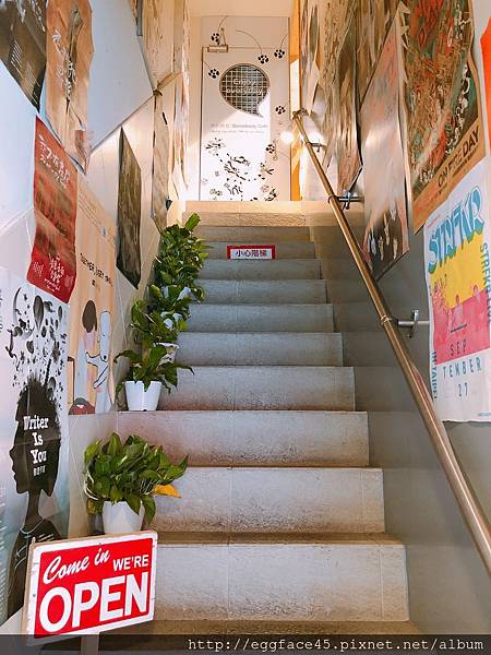 ▼店家位於二樓,走上充滿藝文資訊的樓梯間,就到了。