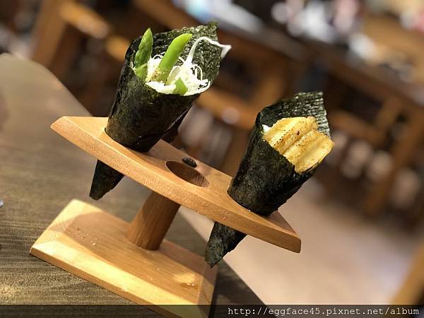 - 星鰻手捲(單點100元):星鰻肉質細緻有味,搭配醋飯有飽足感。