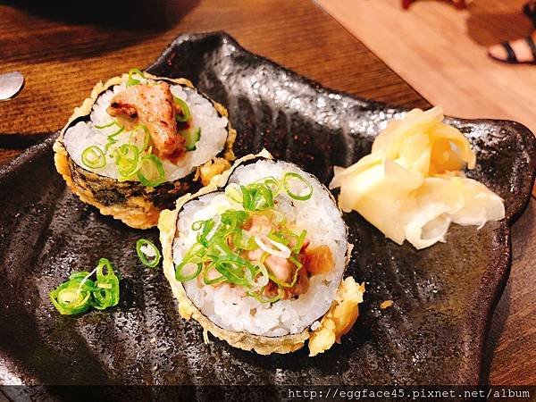 沒想到,花捲壽司也能用炸的,有吃天婦羅的感覺!!
