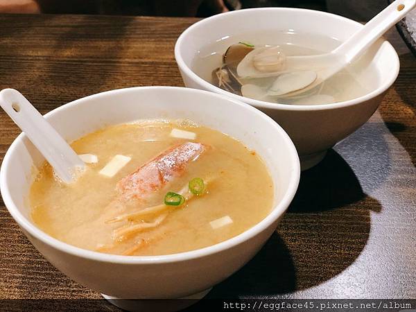 - 甜蝦頭味噌湯(御膳套餐):湯頭濃郁,一口喝下滿滿的鮮甜蝦味,蝦爆的味噌湯!!
