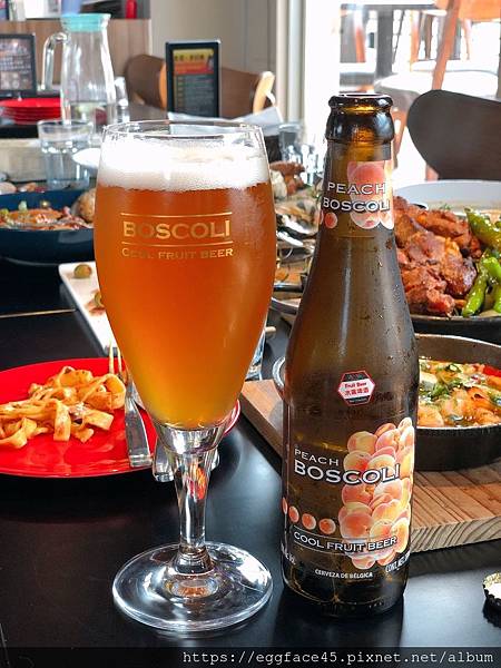 金黃色澤的水蜜桃啤酒,酒精濃度為3.5%,