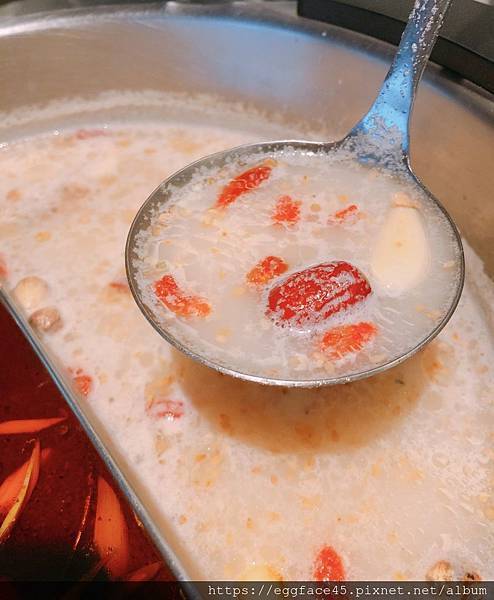 湯頭以蔬果及豬大骨熬製而成,還加入蒜頭、枸杞、紅棗…等中藥材,