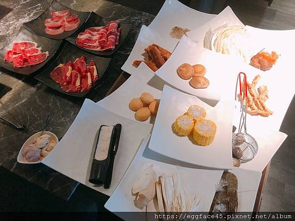 ▼辛殿的上菜速度很快,蛋寶點完單、飲料才剛拿好,就送上滿滿一桌的食材了!