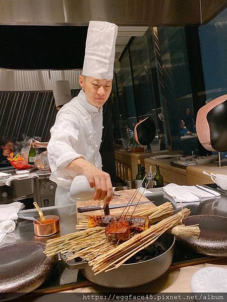 先由廚房準備,以炭火的方式烹調上桌,這道料理末嚐先轟動,