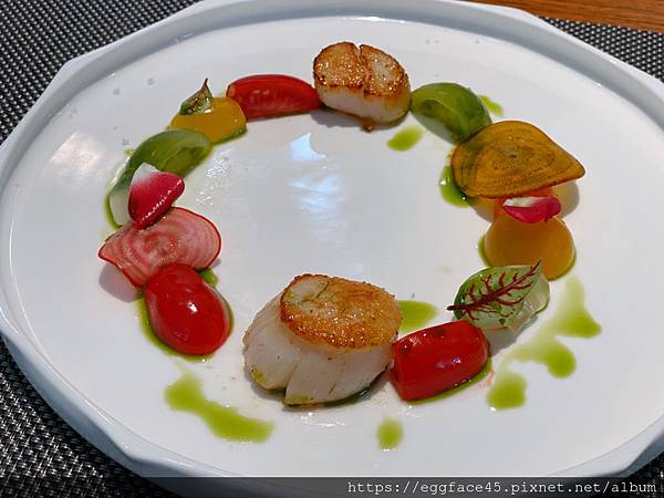 煎到半熟的生食級北海道干貝,內心都還是半透明的,