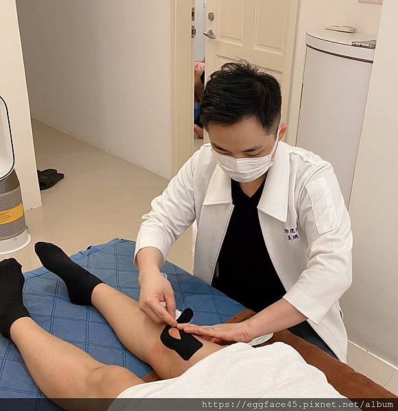 ▼吳老師還幫我在多年前膝蓋舊傷上,貼上運動繃帶,幫助固定喬回來的骨頭。