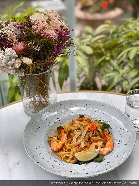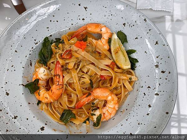 我們要求換寬麵,麵條Q彈有嚼感,鮮蝦3隻已剝殼,小辣口感意外好吃😋