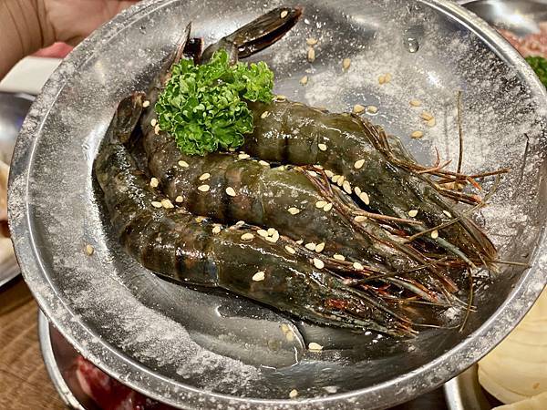 海蝦送上桌時,已灑上椒鹽調味過,直接放入爐中就可以烤了!