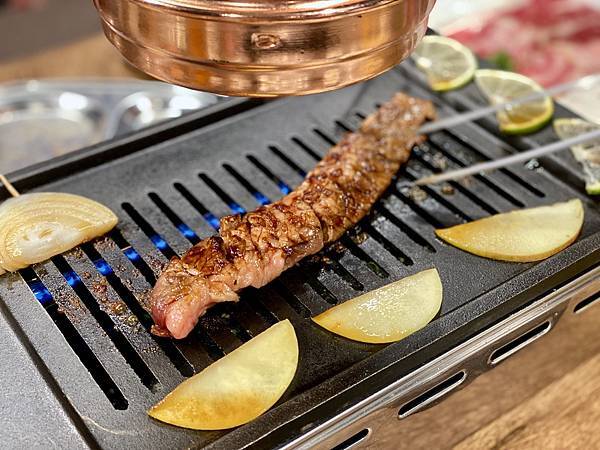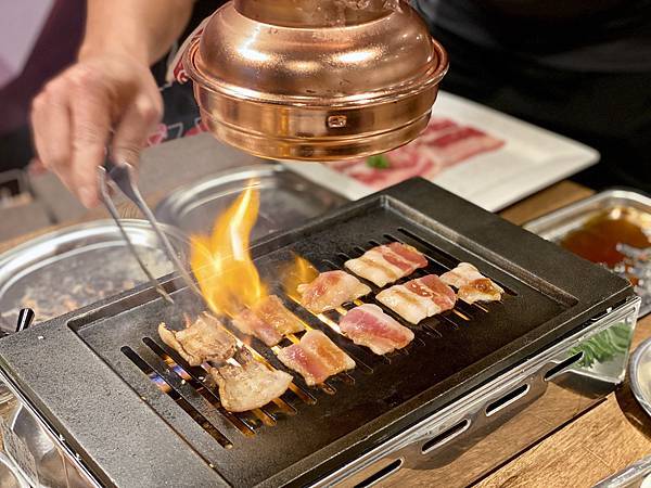 店家建議先從較有油脂較豐富的肉品開始烤,比較不會黏網,