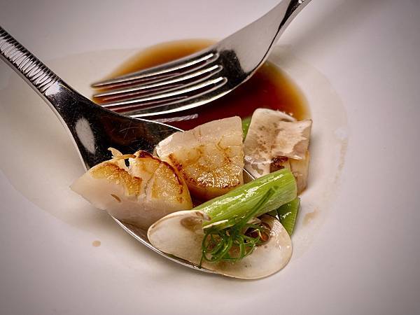 下層香煎干貝,汁水風味飽滿,鮮美輕盈,