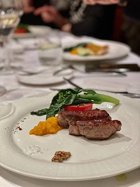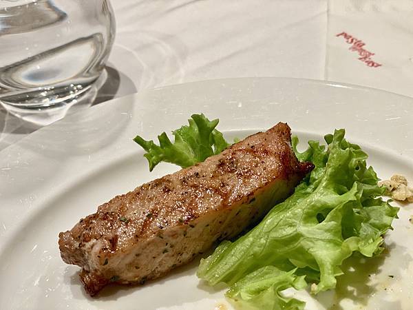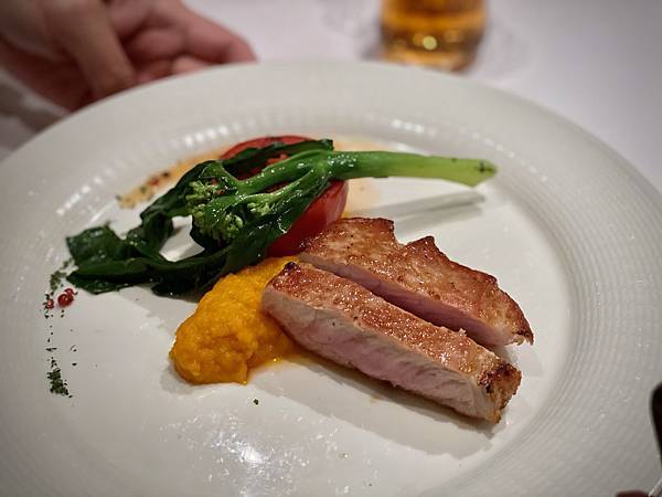 這道熱前菜用的是台灣黑毛豬,肉質很有彈性,